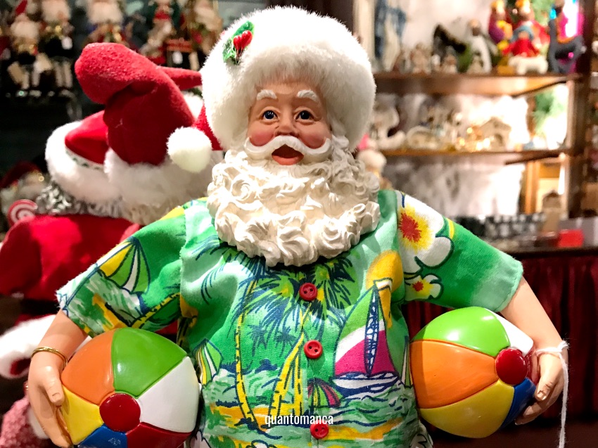I canti natalizi si sentono ovunque, anche se cantare “Let it snow” sotto il sole cocente ha il suo lato ironico.